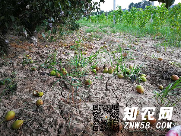 知農網訊 8月10日下午的一場大風致使蒲城酥梨再度減產。今天早晨,筆者走訪蒲城黨睦梨園掉了一地的梨子在朝陽的照射下顯得楚楚可憐。一梨農說到:5畝地的梨讓風掛下來了2000余斤,按照今年的行情損失3000多元,這風讓今年雪上加霜,就靠樹上掛的這點梨保本呢,這下看來么希望了。