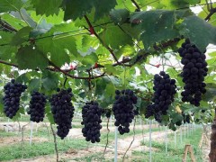 陜西渭南夏黑葡萄原產于日本,巨峰后代,屬早熟歐美品種歐美雜交種,三倍體品種,1997年8月獲得品種登記,1998年引入我國。。陜西夏黑葡萄6月下旬就有成熟。特點是早熟,無核,高糖低酸,香味濃郁,肉質細脆,硬度中等,在歐美葡萄里算比較硬。