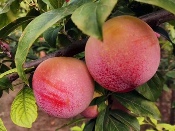 金秋紅李子平均單果重150克,大果200克以上(最大80-85公分果梗短,果底白黃色,果子成熟前粉紅色,完熟后鮮紅色,果肉黃白色,汁多味甜,質脆,風味佳。離核,核小,核紋類似桃核果粉厚,外觀美,紅度好。